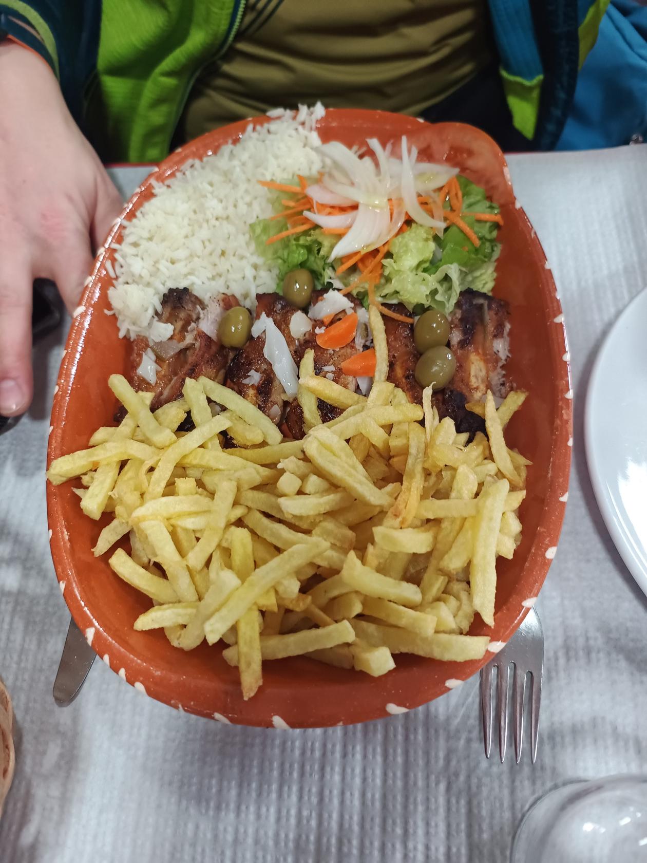 Jako vždy máme připravený Google Lens, ale servírka nás předběhne a hned valí s telefonem, kde svítí: pork with fries and rice – nečekaná klasika. Jenže já chci polívku. Řeknu: „supa?“