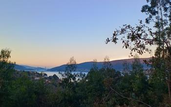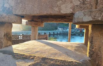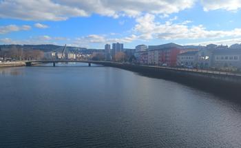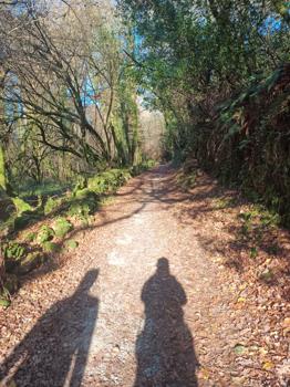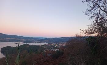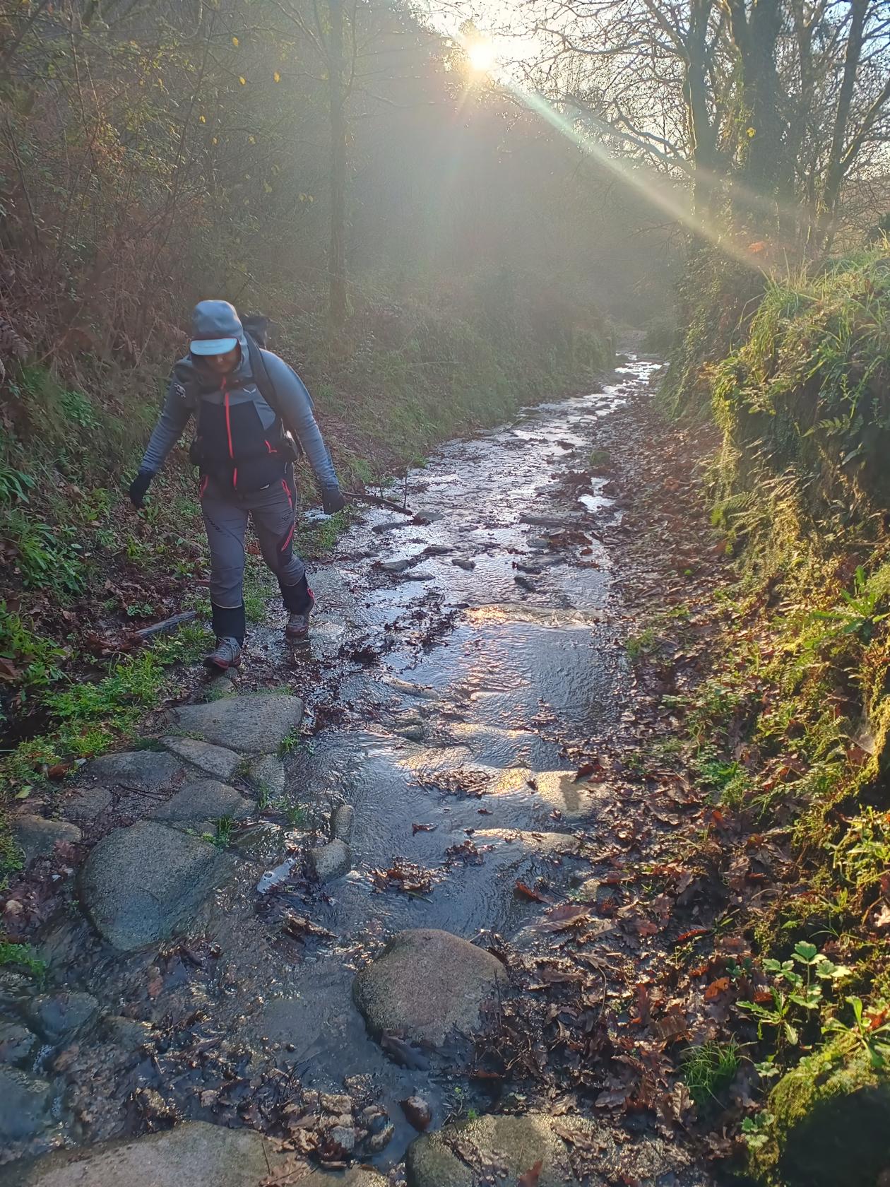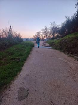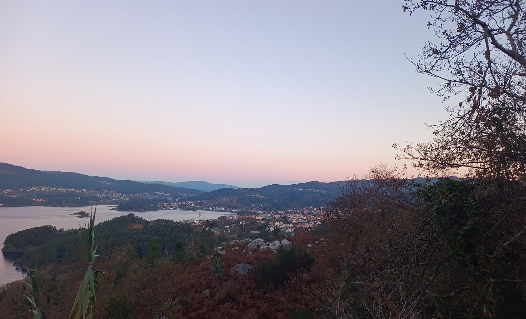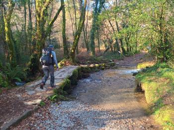 Šlapeme dál. Mají tu moc hezký most a v dáli vidíme Vigo – vypadá to moc nádherně. Svítí slunce a fouká ledový vítr, ale neprší!