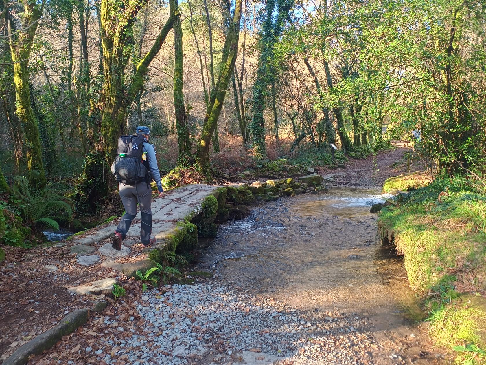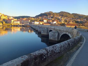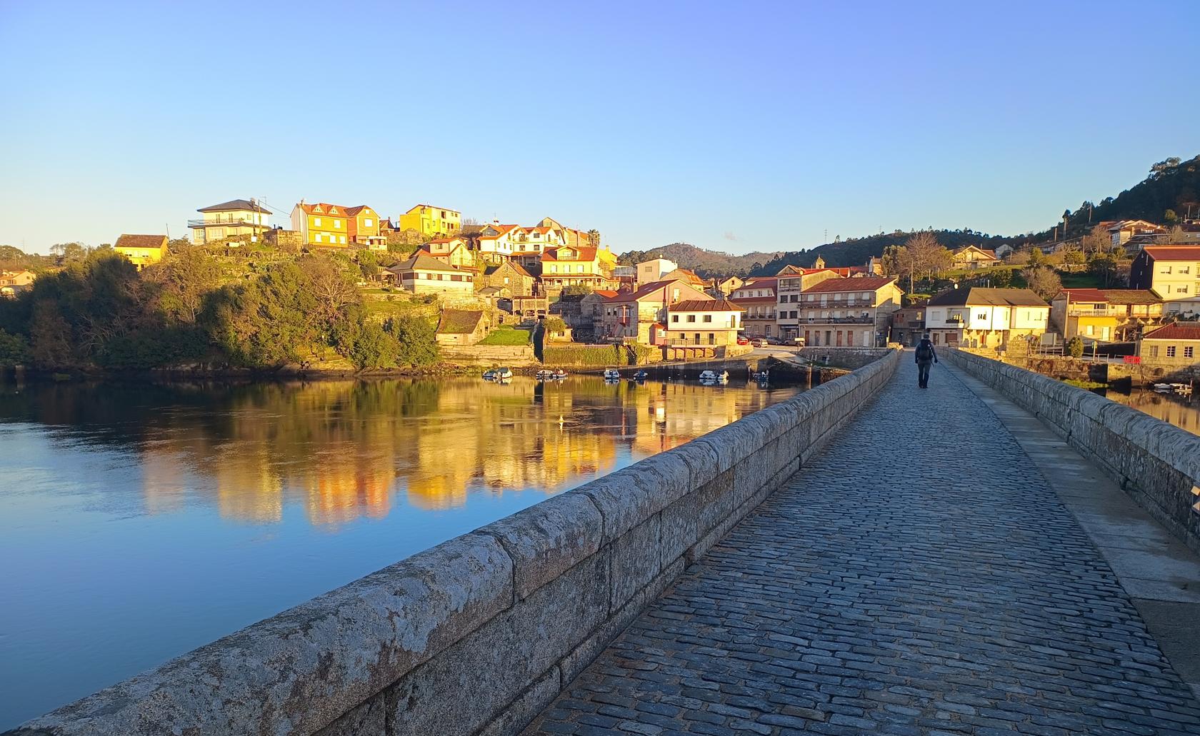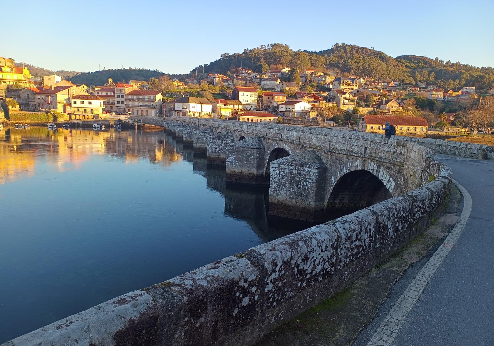 V Calle přecházíme nádherný kamenný most – nejhezčí na celé trase. Protější vesničku právě osvěcuje vycházející slunce, všechno kolem vypadá kouzelně.