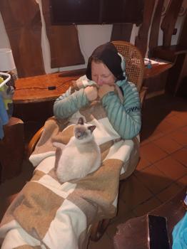 Tak si dávám hodinový power bonding s krbem, překládám a otáčím oblečení jak bramboráky na pánvi, dokud mě to nepřestane bavit. Mezitím mě začínají atakovat místní kočky – přítulné, chlupaté, roztomilé… a taky alergenní. Škoda, že mě po každém kontaktu začíná dusit vlastní imunitní systém.